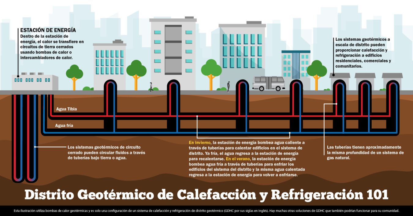 · Edificios públicos y distritos: district heating urbano con múltiples bombas y BTES (almacenamiento estacional); ejemplos en Europa y EE. UU.